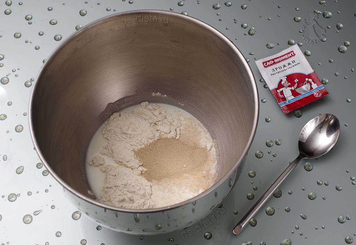 Важно! Молоко, в котором разводят дрожжи, ни в коем случае не должно быть горячее 40 – 50°С, иначе дрожжи могут погибнуть и тесто не поднимется. Проще всего подогреть молоко в микроволновой печи в стакане или другой подходящей посуде