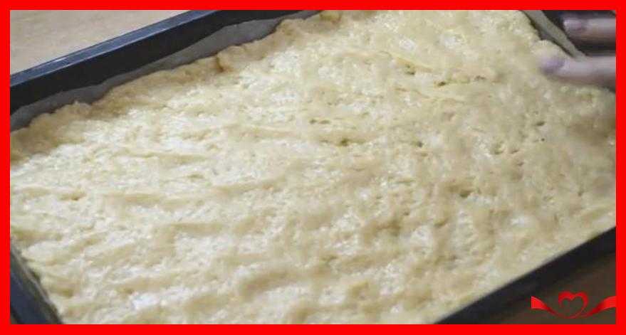 - Достаньте тесто из холодильника. Приготовьте форму для запекания, тесто необходимо распределить руками по всей поверхности формы тонким слоем.