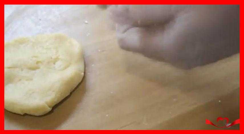 Одну четверть отправьте в холодильник, чтобы побыстрее тесто застыло сделайте из него небольшие тонкие лепешки.