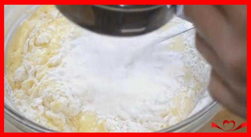 - Муку дважды просеять в широкую удобную для этой цели миску. всыпать в нее разрыхлитель. Размешать;