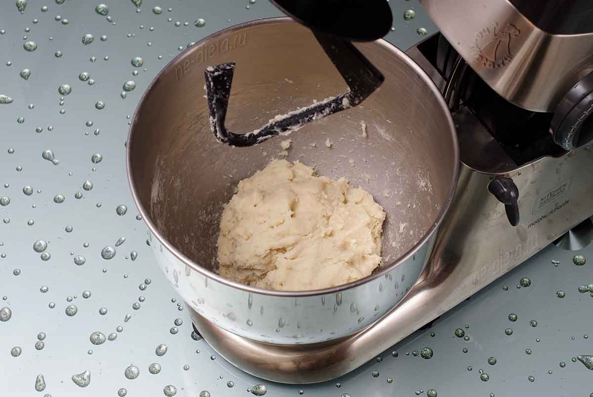 - Замешиваем мягкий шар, который не будет прилипать к рукам. Можно слегка подпылить его мукой.