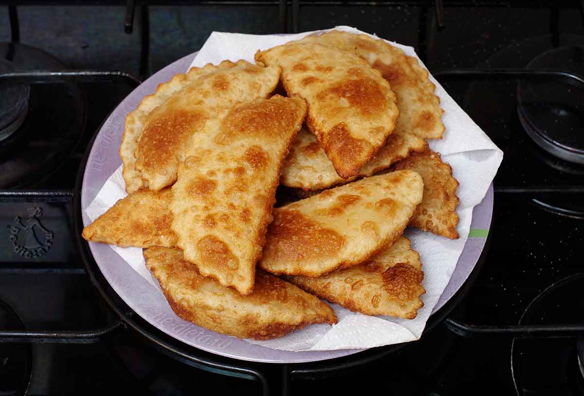 Выбор начинки – за вами. Сформировав пирожки, обжарить их в большом количестве масла, на среднем огне. На каждый пирожок отрывайте 45-60 г теста. Получится 15-20 штук.