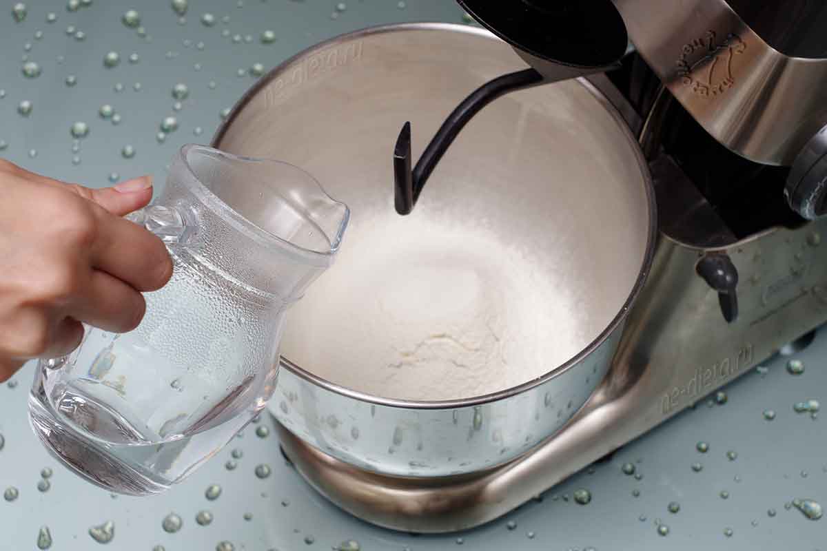 - Засыпаем оставшуюся муку, смесь станет гуще в процессе замешивания.