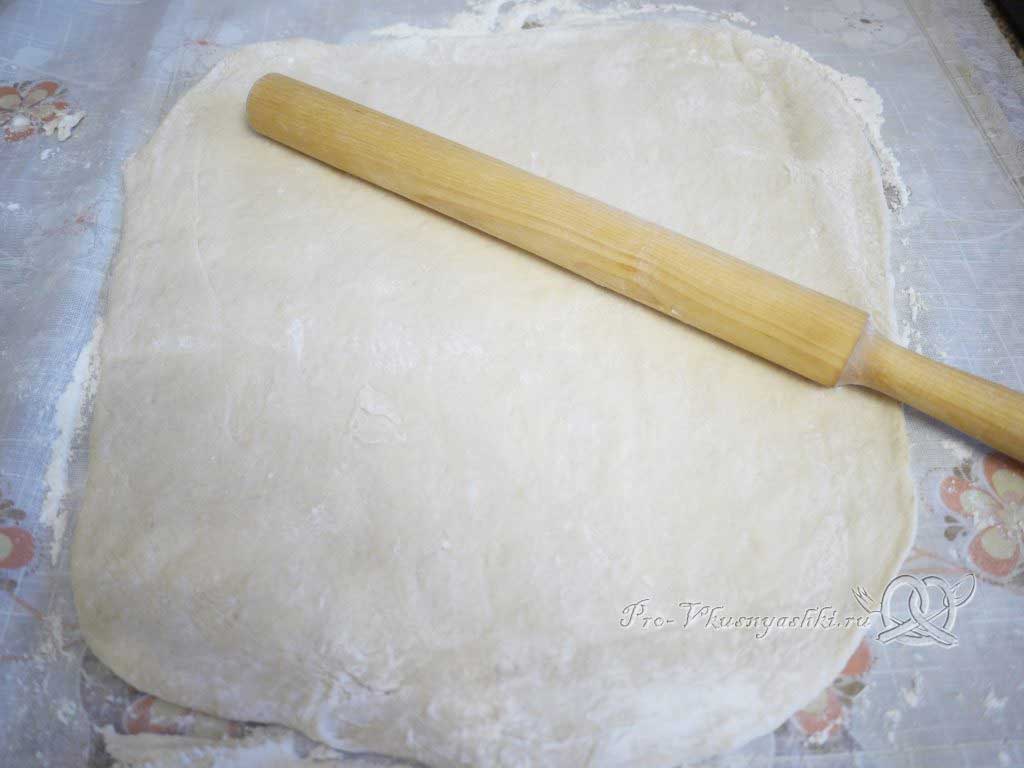 Пока занимались начинкой, тесто поднялось, и можно приступать к его раскатке.