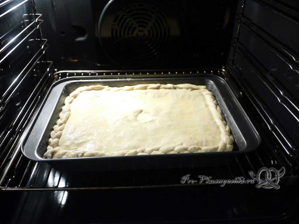 - Закройте другой частью теста. Поставьте в духовой шкаф на 25 минут при 195-градусной температуре.