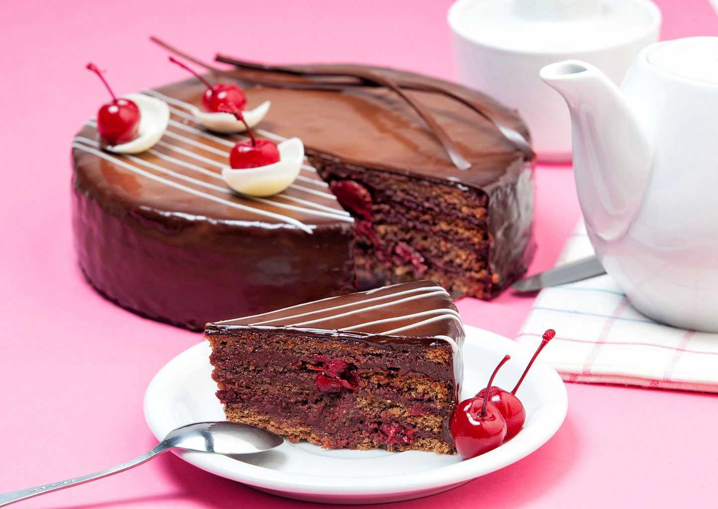 Торт с какао и вишней имеет приятный вкус. Он очень легкий и изысканный. Пирог содержит в своем составе: