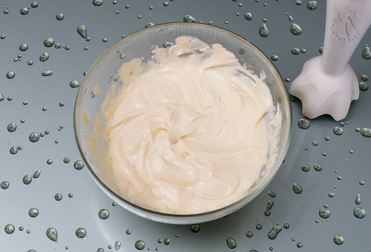 Если творог крупнозернистый перетрите его через сито. Выложите в емкость миксера, добавьте сметану и мягкое масло. Взбивайте, используя насадки для замешивания теста, пока не получиться пышная, однородная масса.