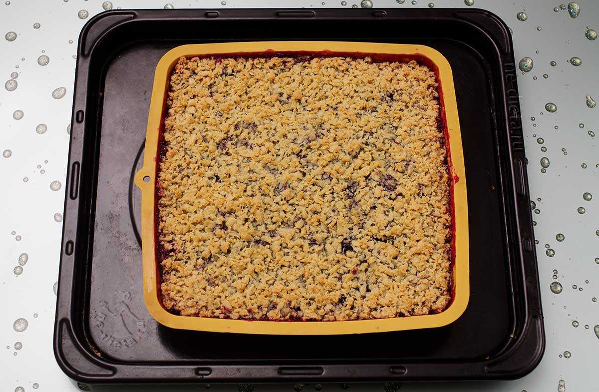 12. Выпекать тертый пирог с вареньем еще 20 минут до легкого зарумянивания.