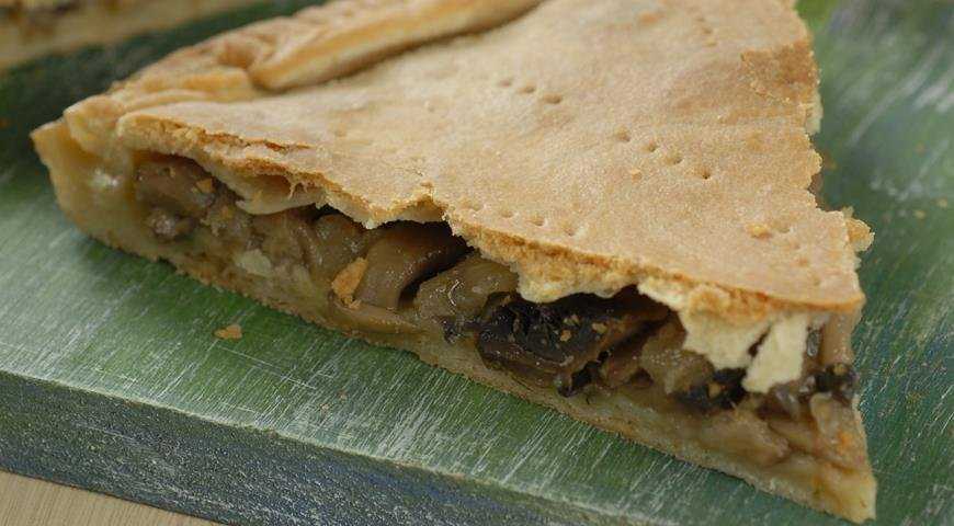 - Достаем слегка пропекшееся тесто из духовки. Выкладываем грибную начинку, накрываем тестом, и хорошо защипываем края.