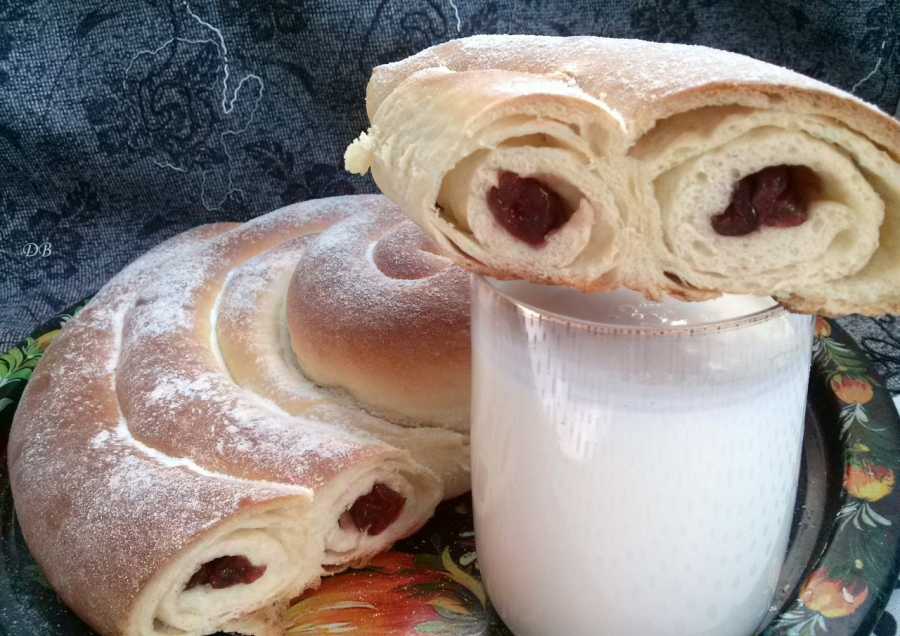 Если вы хотите сделать какой-то необычный пирог, чтобы ваши гости и домочадцы сразу и не поняли, что начинка у него приготовлена из вишни, тогда предлагаем вам завернуть тесто в форму ракушки улитки. Вишня будет видна в разрезе пирога: