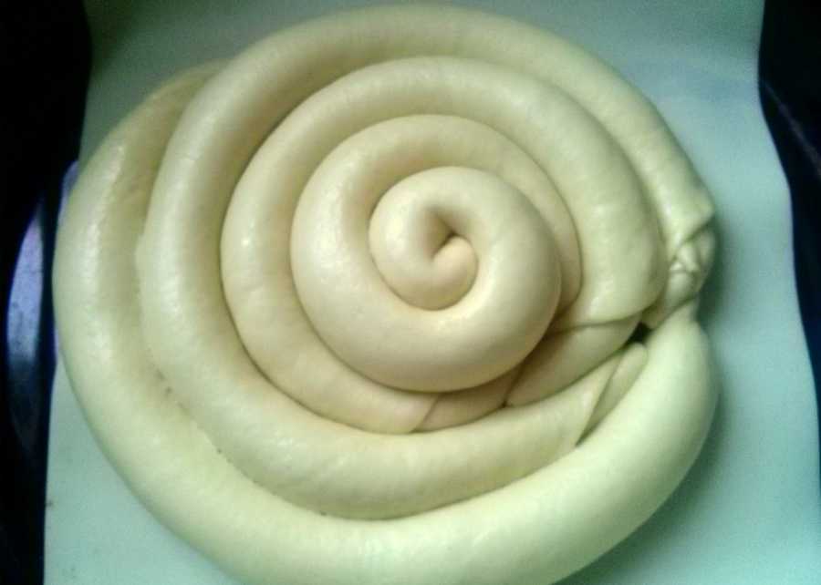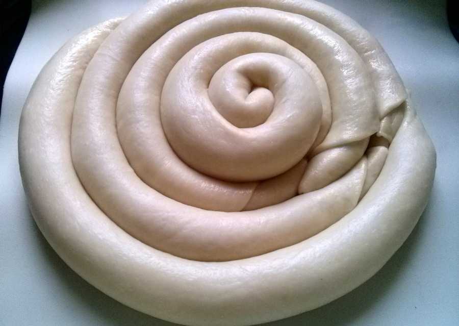 Один из вариантов необычного оформления пирога в виде калача такой.Отдели 1/3 теста, затем скатай две колбаски и переплети их жгутиком, согни дугой и на час положи в холодильник. Из второй части тес…