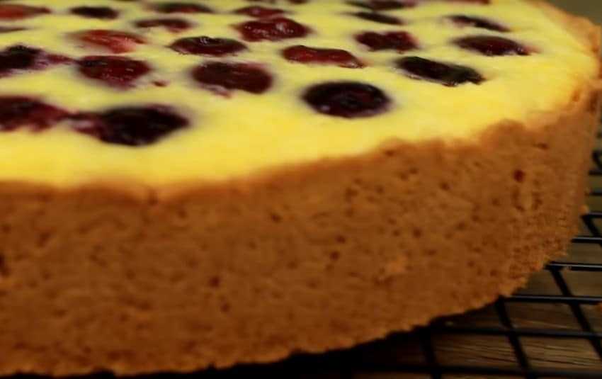 Простой рецепт вишневого пирога с мягкой творожной начинкой