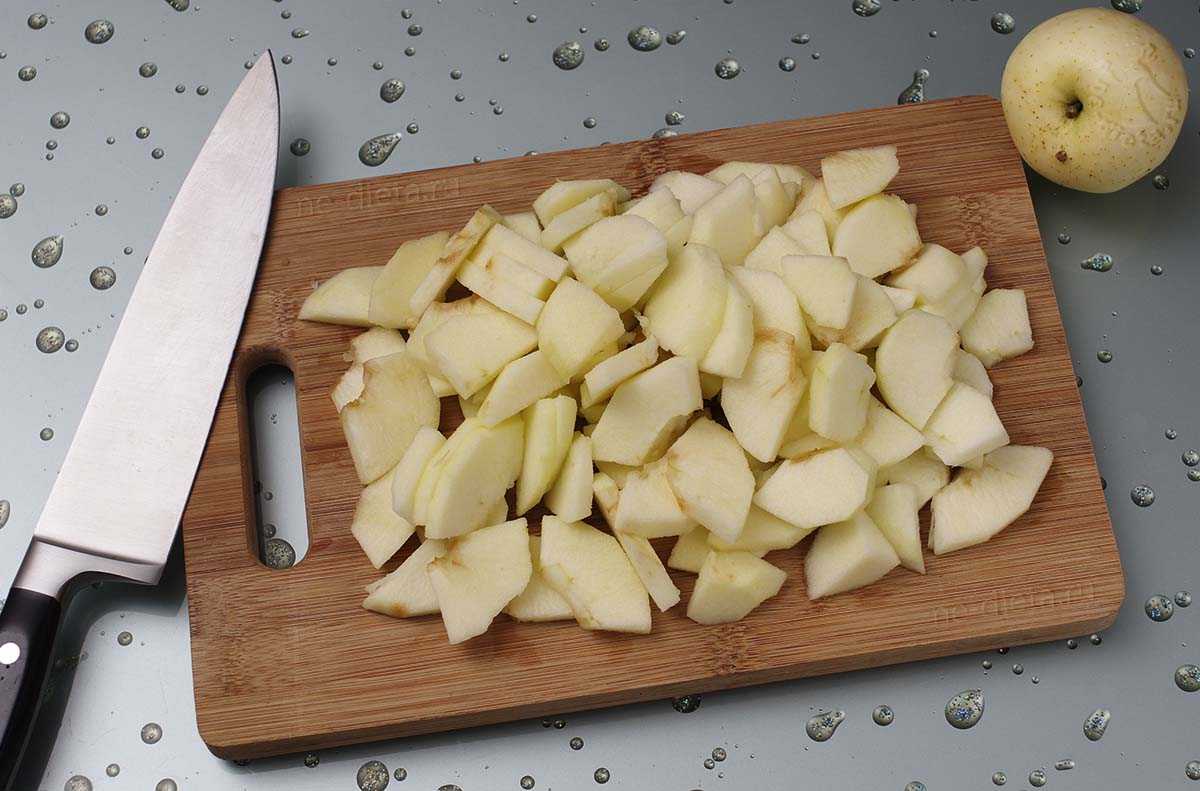 - Мякоть яблок нарезаем на пластины.