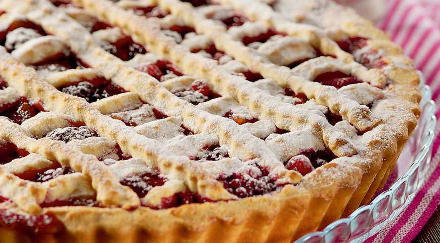 - Пекут пирог с калиной из песочного теста 30-40 минут при 190 градусах.