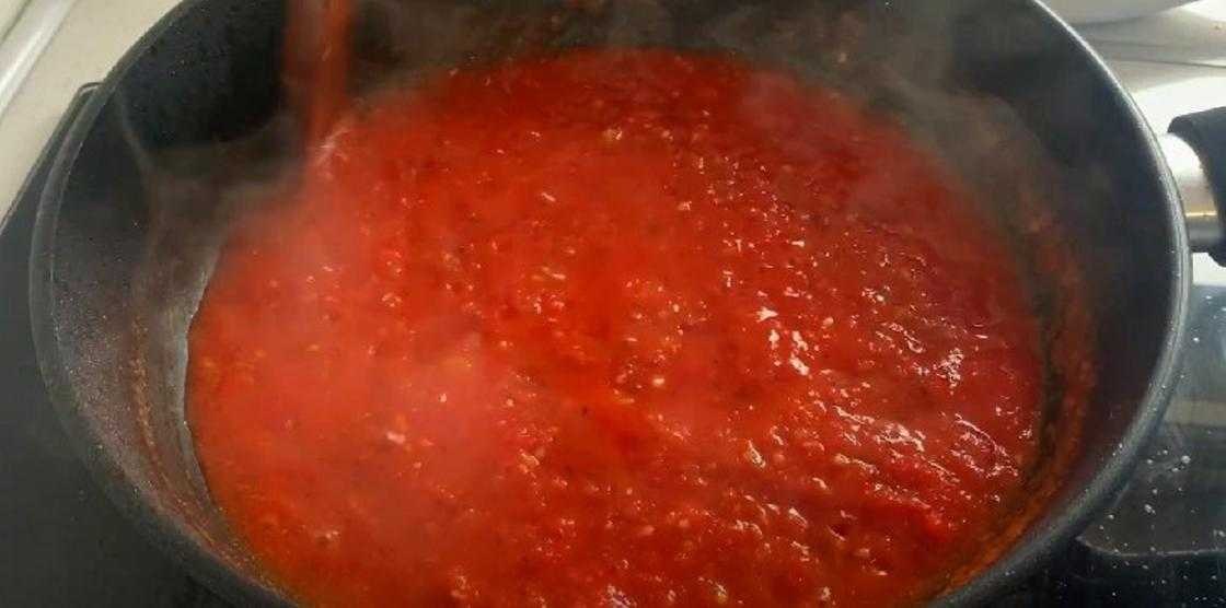 - На маленьком огне варите до удаления лишней влаги, то есть около 10 минут. Когда соус загустеет, выключите плиту и положите соль, перец, орегано и базилик.