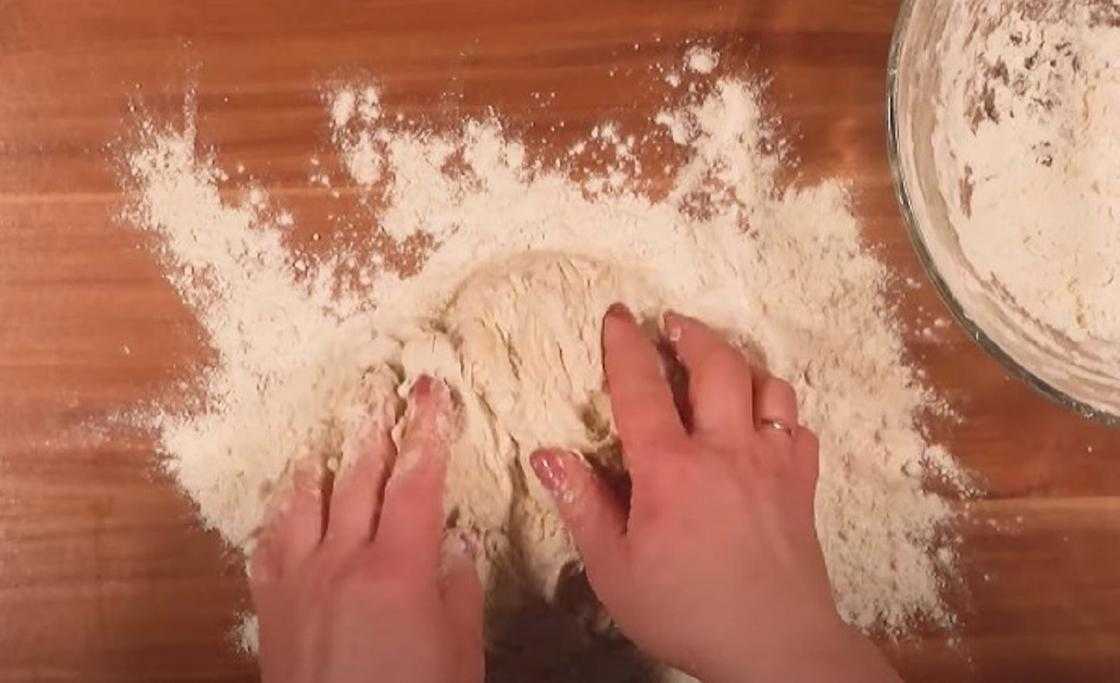 - Вымешивайте тесто сначала ложкой, а после и рукой. Оптимальная плотность идентична той, что имеет мочка уха. Замешивание теста прекращайте, когда оно перестанет липнуть к рукам.
