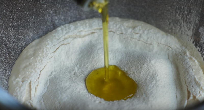 Далее надо добавить муку по норме, растительное масло (3 ложки). Идеально – оливковое. Сделать мягкое тесто.