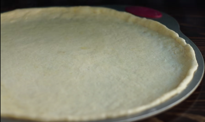 Тесто тонко раскатываем в круг, параллельно включаем духовку на 200 градусов.