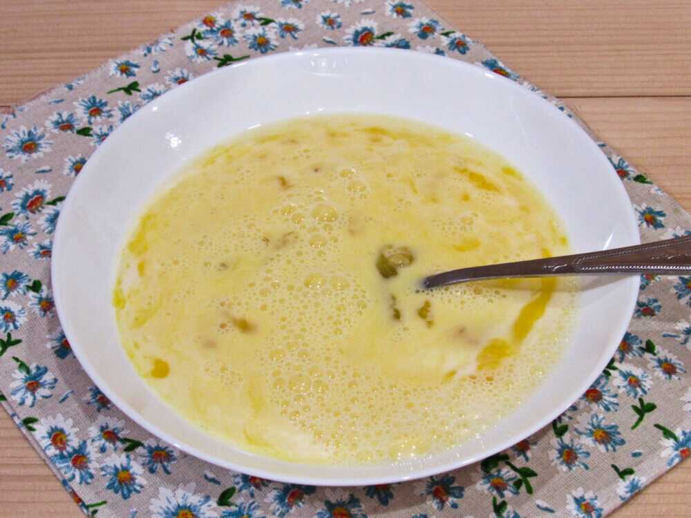 - Молоко комнатной температуры, немного соли, черного перца молотого, если любите по острее. Можно поиграть с приправами. Разболтать всё вилочкой.