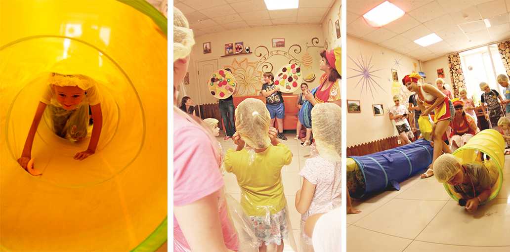 Взяв один ингредиент пиццы, ребенок залезал в тоннель, проходил его и приклеивал ингредиент на пиццу.