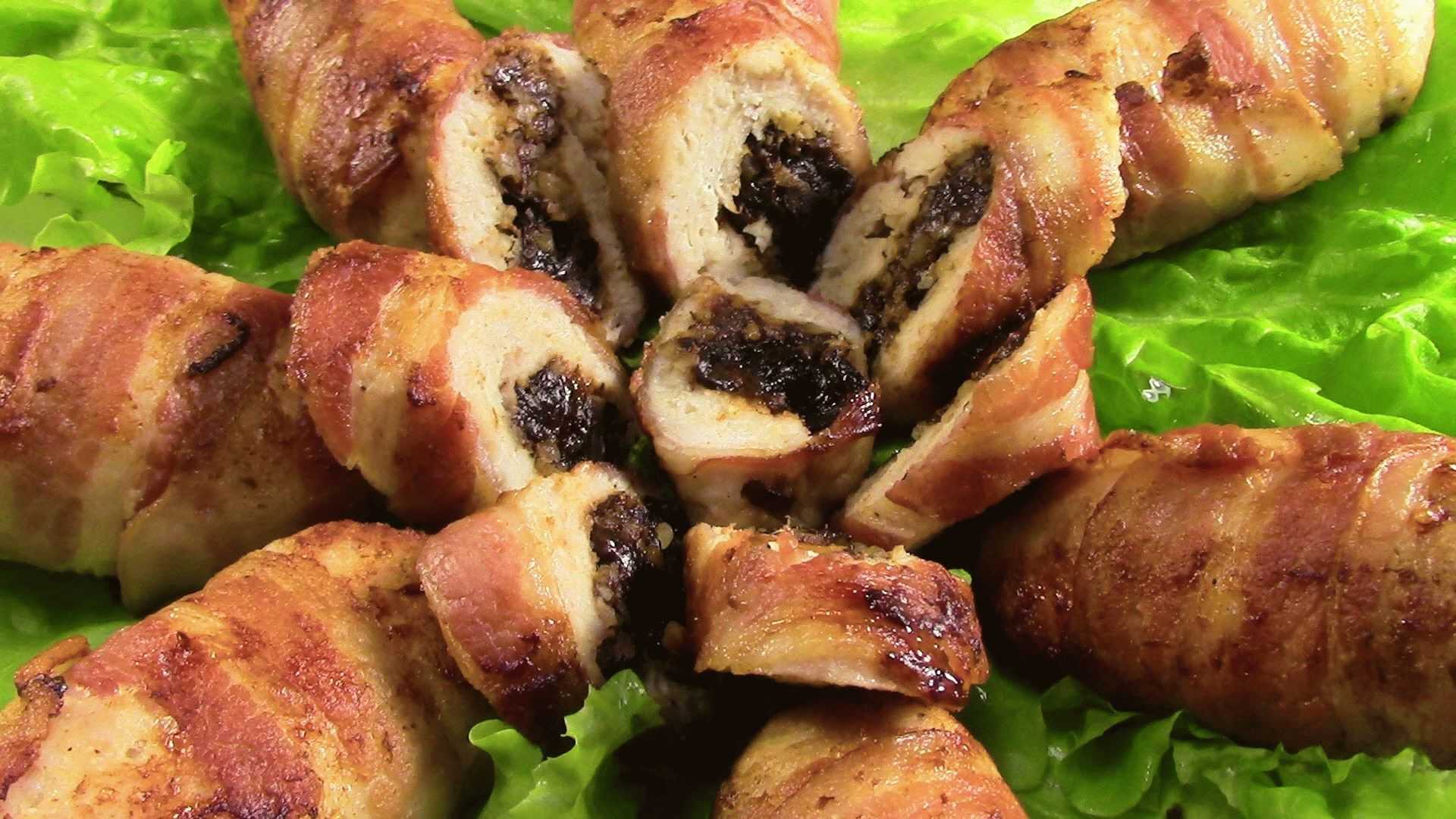 Куриные рулетики с черносливом и орехами запечённые в духовке