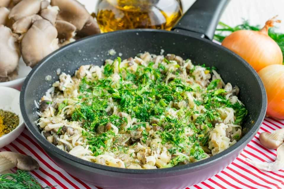 3. Остудите обжаренные вешенки с луком до комнатной температуры. Затем добавить в начинку тертый твердый сыр.