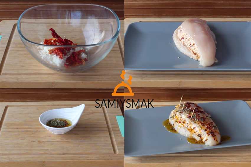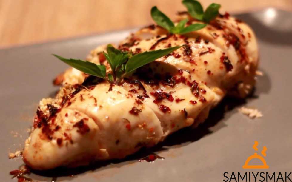 - куриное филе является довольно сухим продуктом, поэтому, чтобы добавить сочности ингредиенту, сверху можно дополнительно промазать мясной пласт майонезом, сметаной или греческим йогуртом;