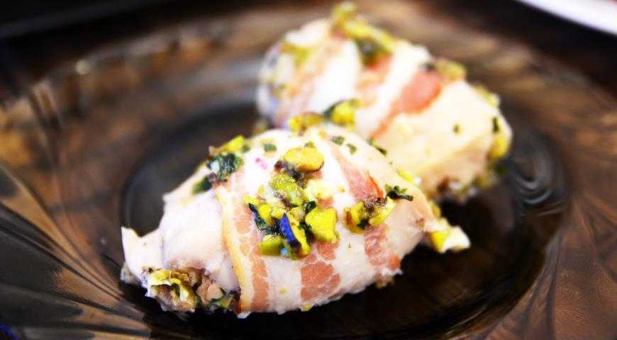 - Рецепт куриных рулетиков в беконе с сыром, как раз для такого случая. Бекон помогает сохранить куриному филе сочность, а мягкий сыр и фруктовый вкус отлично дополняют вкус куриного мяса.