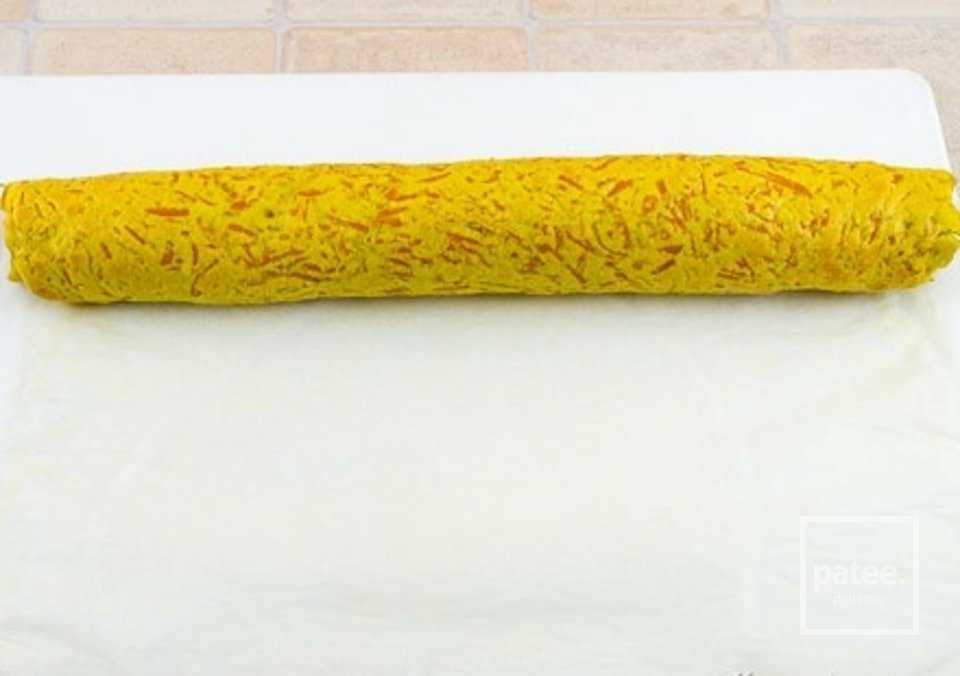 Затем осторожно сверните все в рулет, прижмите и отправьте в холодильник.Когда морковный рулет охладится, он полностью примет нужную форму и его можно будет подавать к столу.