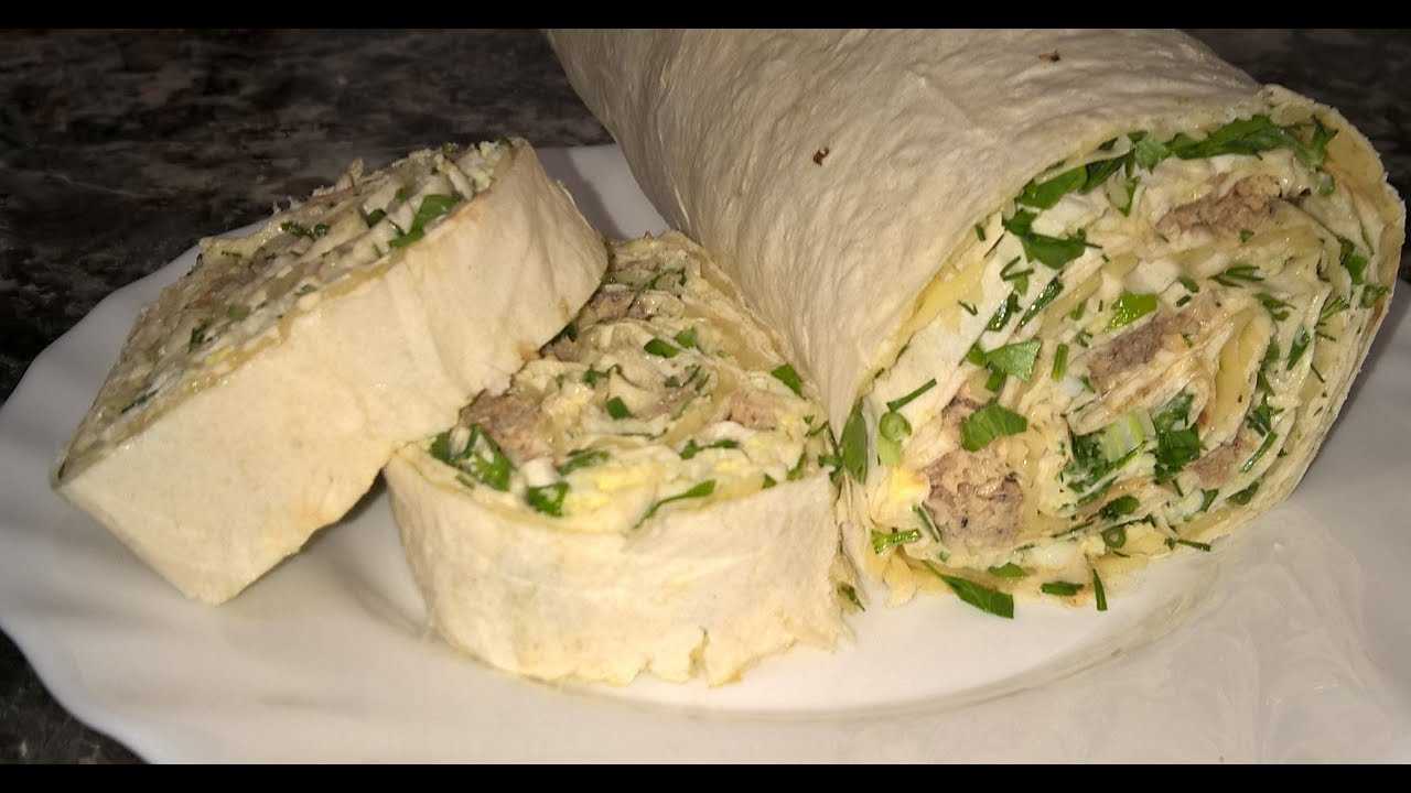 Рецепт рулета из лаваша с печенью трески, сыром и яйцом