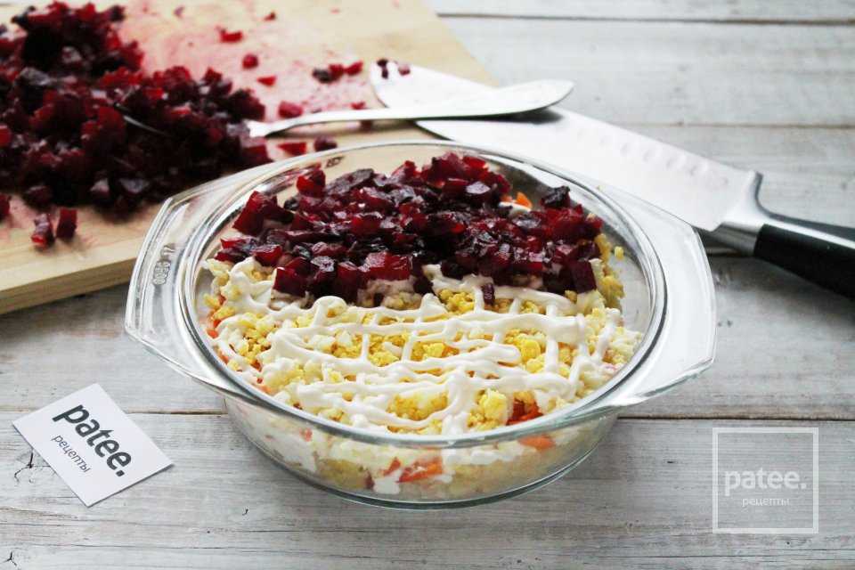 Популярный салат сельдь под шубой можно приготовить без яиц.