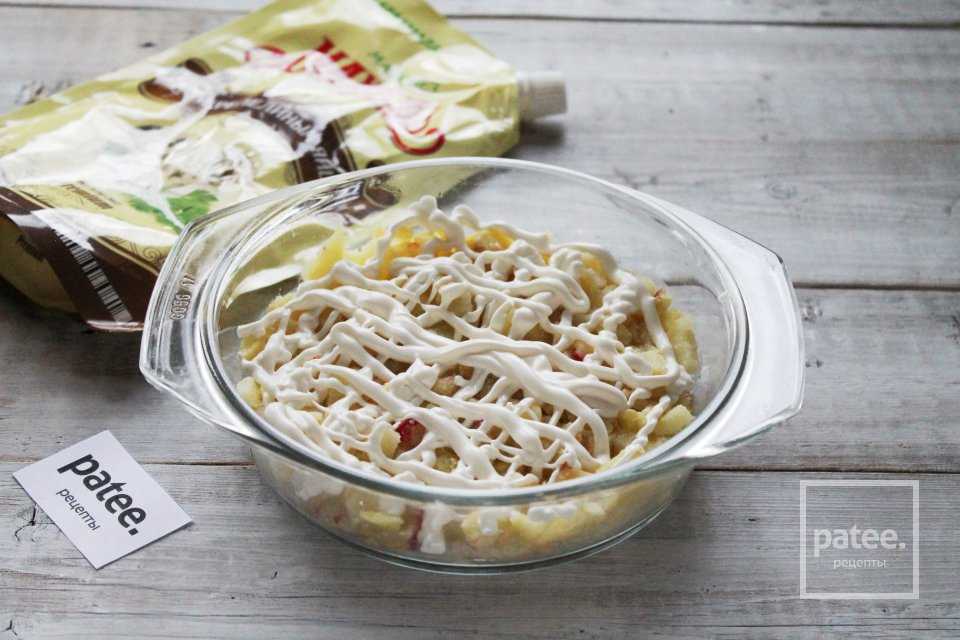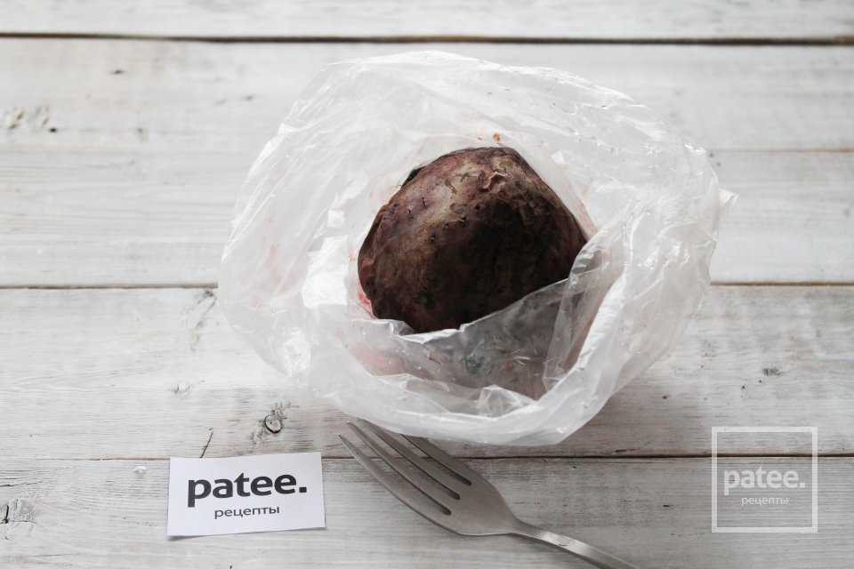 Следующий слой снова промазываем майонезом. Теперь добавляем натертую свёклу. Рекомендую этот овощ именно запекать, так как в отварном виде он слишком водянистый.
