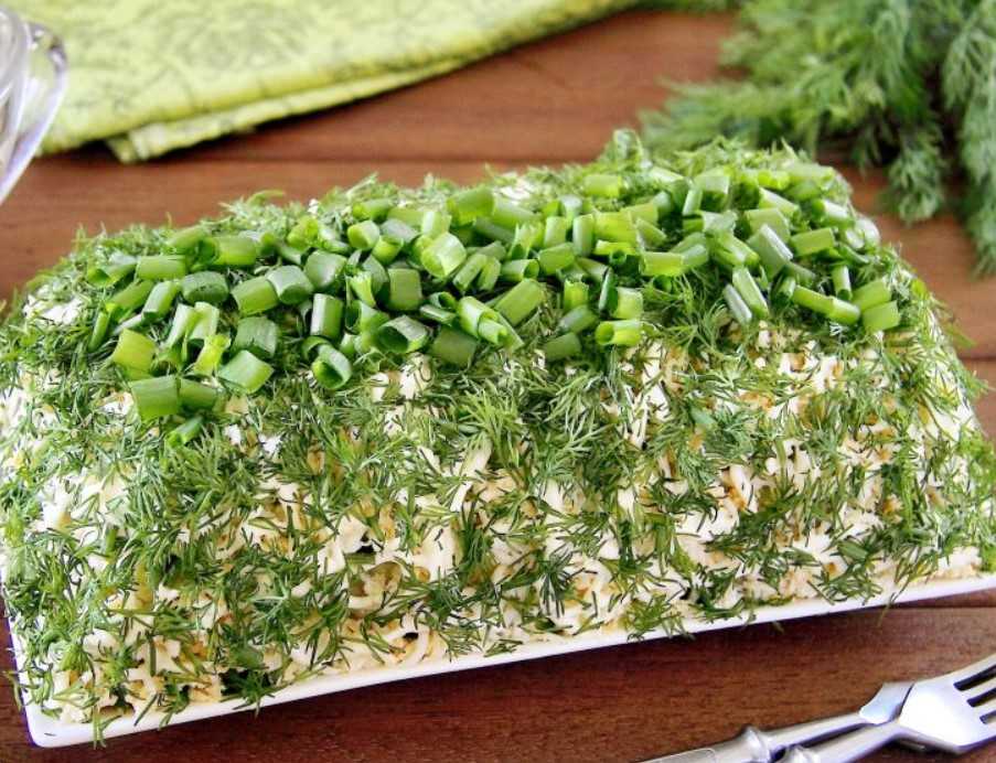 Классический салат Мимоза с рыбными консервами. Простой в приготовлении рецепт с пошаговым описанием и фото.