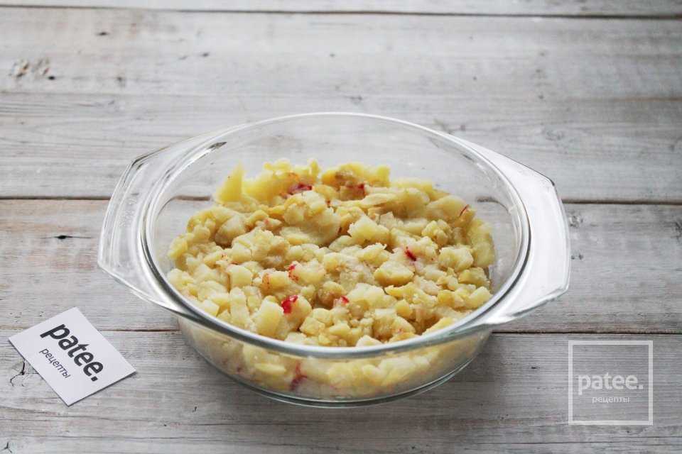 Что касается сельди, то в этом рецепте есть два варианта её добавления. Очищенное филе режем небольшими кусочками. В помощь вам правила чистки селедки – https://na-vilke.ru/kak-chistit-selyodku.html.