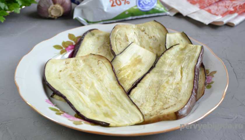 7. Почти готовые ломтики баклажана перекладываем на тарелку и остужаем.