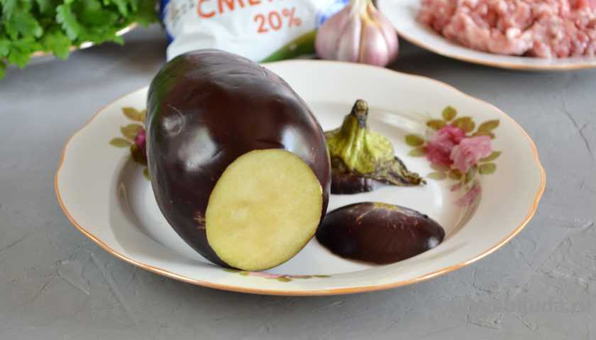 1. Баклажан промываем и срезаем немного с двух сторон, чтобы удалить плодоножку и переднюю округлую часть.