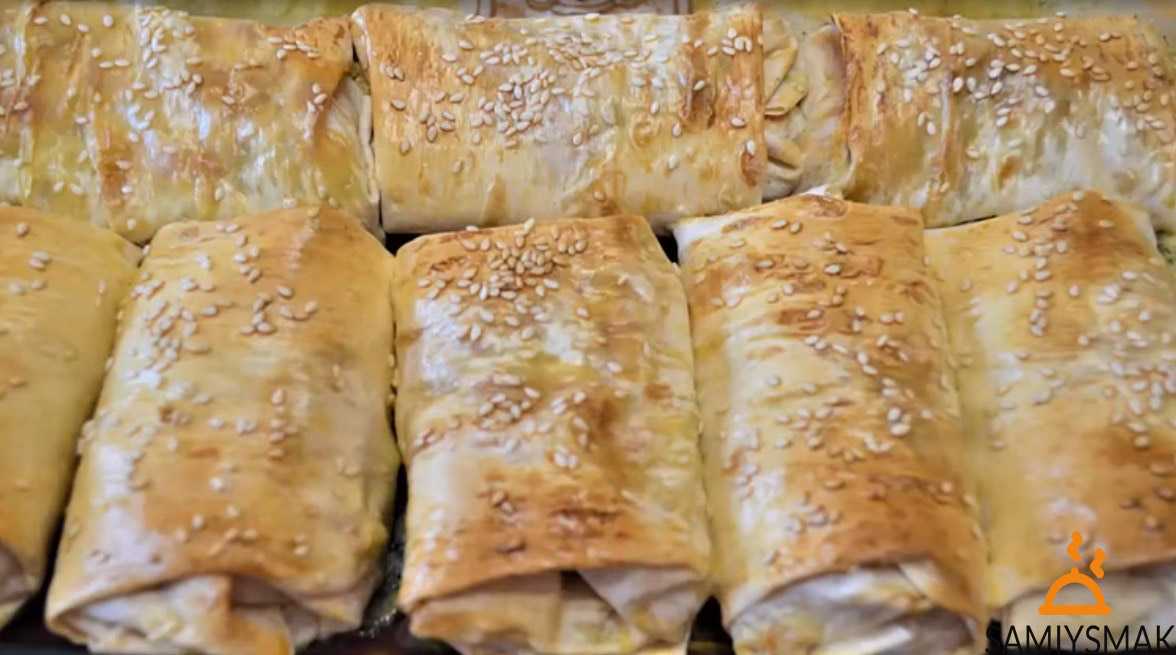 Складывайте заготовки в форму для запекания. Смажьте взбитым яйцом. Посыпьте семенами кунжута. Запеките в духовке при температуре 180˚С 20 минут.