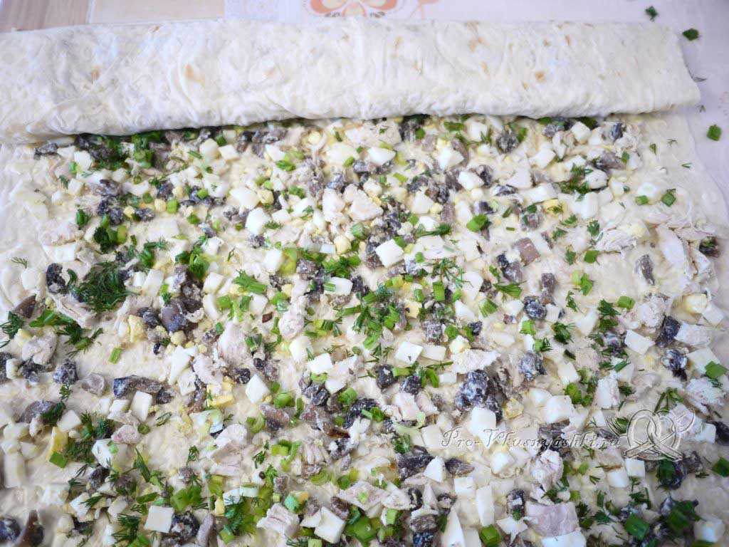 Кулинарный рецепт Рулет из лаваша с грибами