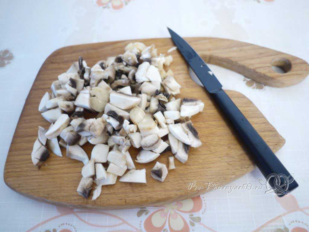 Грибы нарезать тоже достаточно мелко.