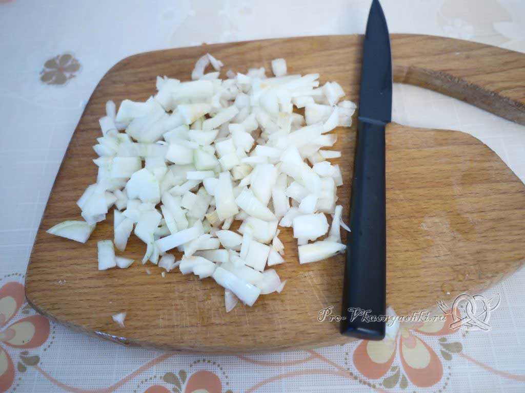 Лук нарезаем мелким кубиком.