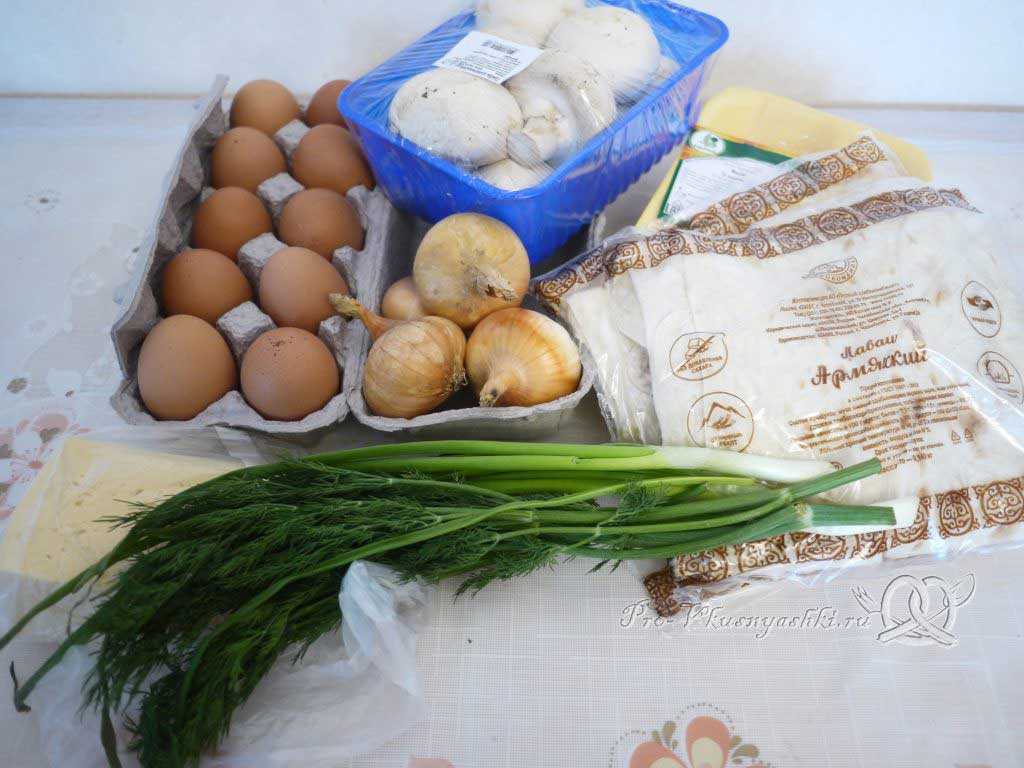 Итак, чтобы приготовить рулет из лаваша с грибами, понадобится: