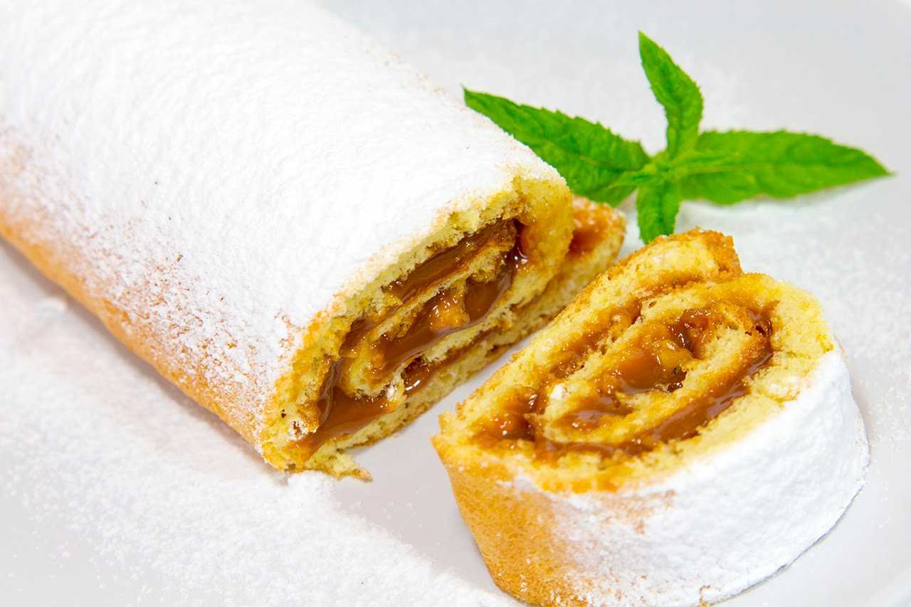Как видите, у этого рулета с вареньем простой рецепт приготовления. Его можно разнообразить за счёт различных начинок. Например, можно сделать сливочный, шоколадный, белковый или творожный крем. Получается вкусный рулет, сладкий. Простой рецепт с вареньем можно поменять на варёную сгущёнку, а можно часть бисквитного коржа смазать вареньем, а часть — сгущёнкой. Простор для творчества не ограничен!